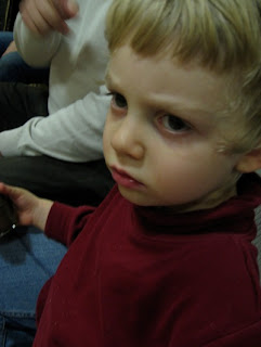Surprisingly, Jonah was shy and wouldn't sing along with the kids. Following another mother's lead, I went up "on stage" and put Jonah in my lap. Once I did that, he joined in, which he normally does enthusiastically. In the four months that we have been here, Jonah has learned at least a dozen Czech folk songs, and he has been speaking more and more Czech, which he seems to enjoy.